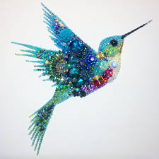 Humming Bird Mixed Media And Button Art Boncuklu Nakis Boncuk Boncuk Pano