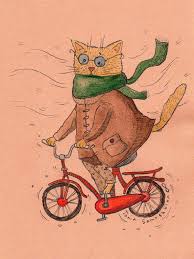 Robust Christmas Coffee Bicycle Cat Original Folk Art Painting Folk Art Cat Cat Illustration Christmas Cats
