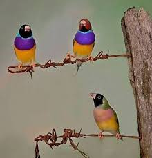 Gouldian Finches 2 Males On Top Branch 1 Female On Bottom Branch A Colorful Passerine Bird Endemic To Australia An Endangered Species It Is Currently Fugle